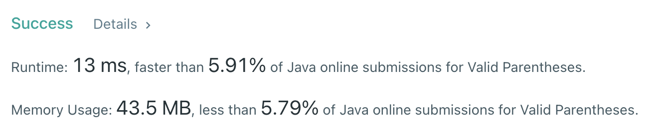 몇 가지 체크해야 할 점은, 로직이 모두 끝난 뒤 스택이 비어 있는지 체크를 해야 하고, 스택이 비어있는 상태에서 닫는 괄호인 ), ], } 가 오면 그대로 false를 리턴해줍니다.